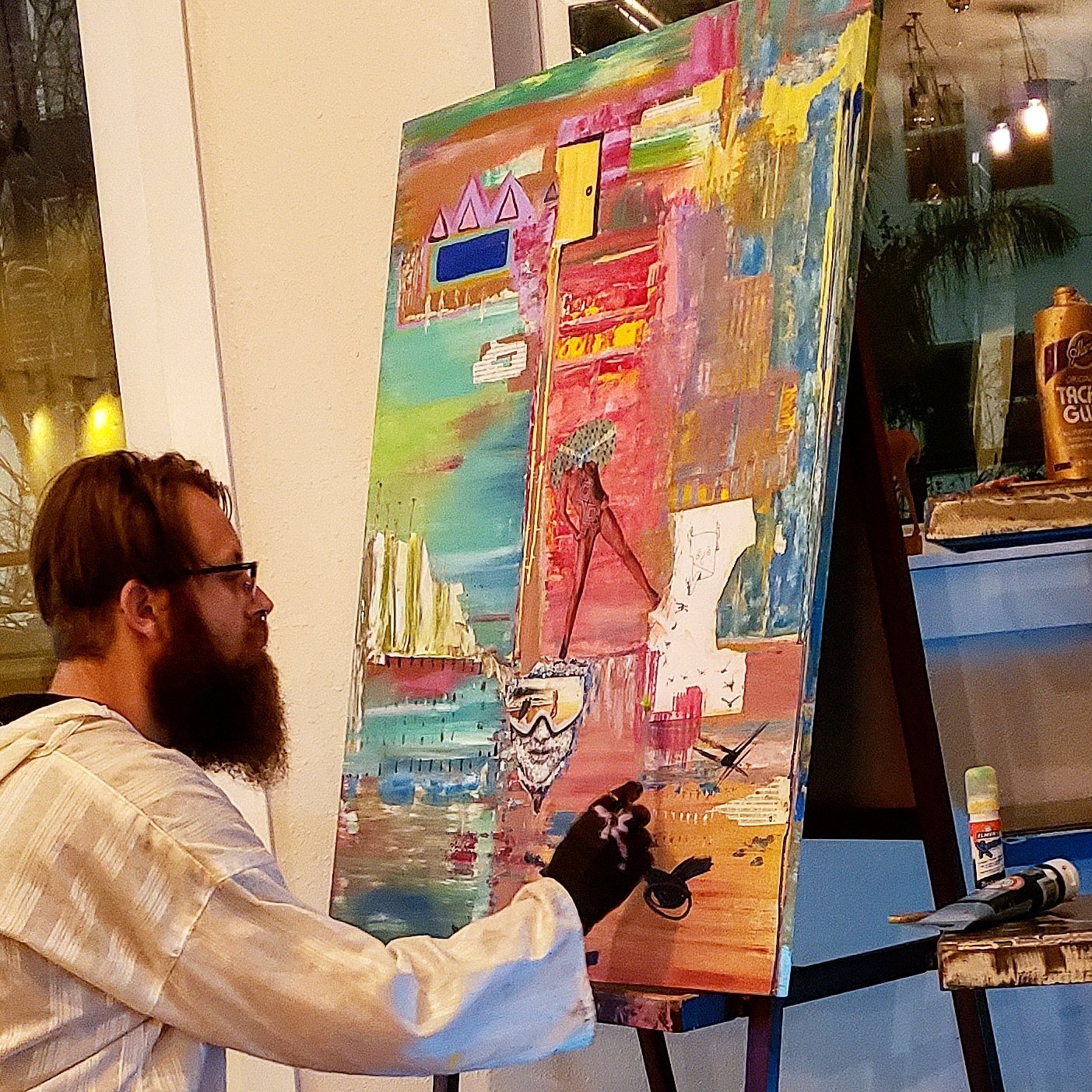Adam Ray Adkins, a.k.a. Dirt: Son of Earth, is a self taught mixed media artist and poet. Rooted in automatic drawing and collage, his work combines elements of personal narrative, pop culture, abstraction, contemporary philosophy, and a heavy dose of stream of consciousness. Starting with making posters for punk concerts and performing action paintings at concerts, his work now includes everything from illustrated notes of philosophy, surreal gifs, abstract landscapes, post digital dreamscapes, glitched photography, and psychedelic music. Currently residing in St. Petersburg, Florida, he is also the host of the Acid Left podcast.
